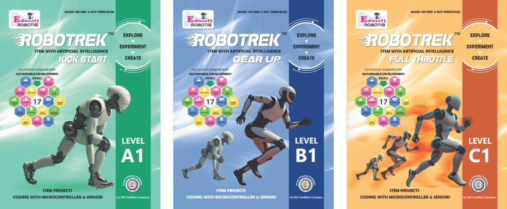 NEP-aligned affordable books, reusable low-maintenance robotics kits, included teacher training, and an AI-enabled digital roadmap for scalable STEM education.