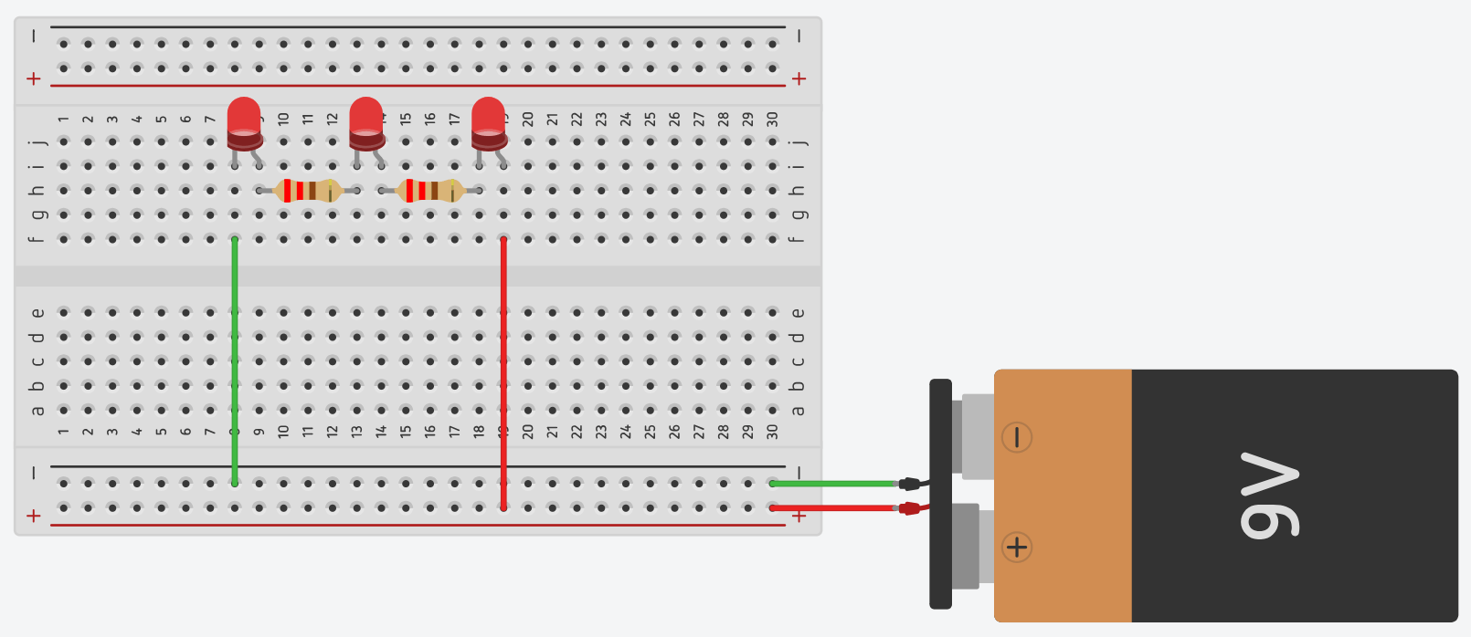In the following project, we are going to create a circuit where the LEDs are connected in series.