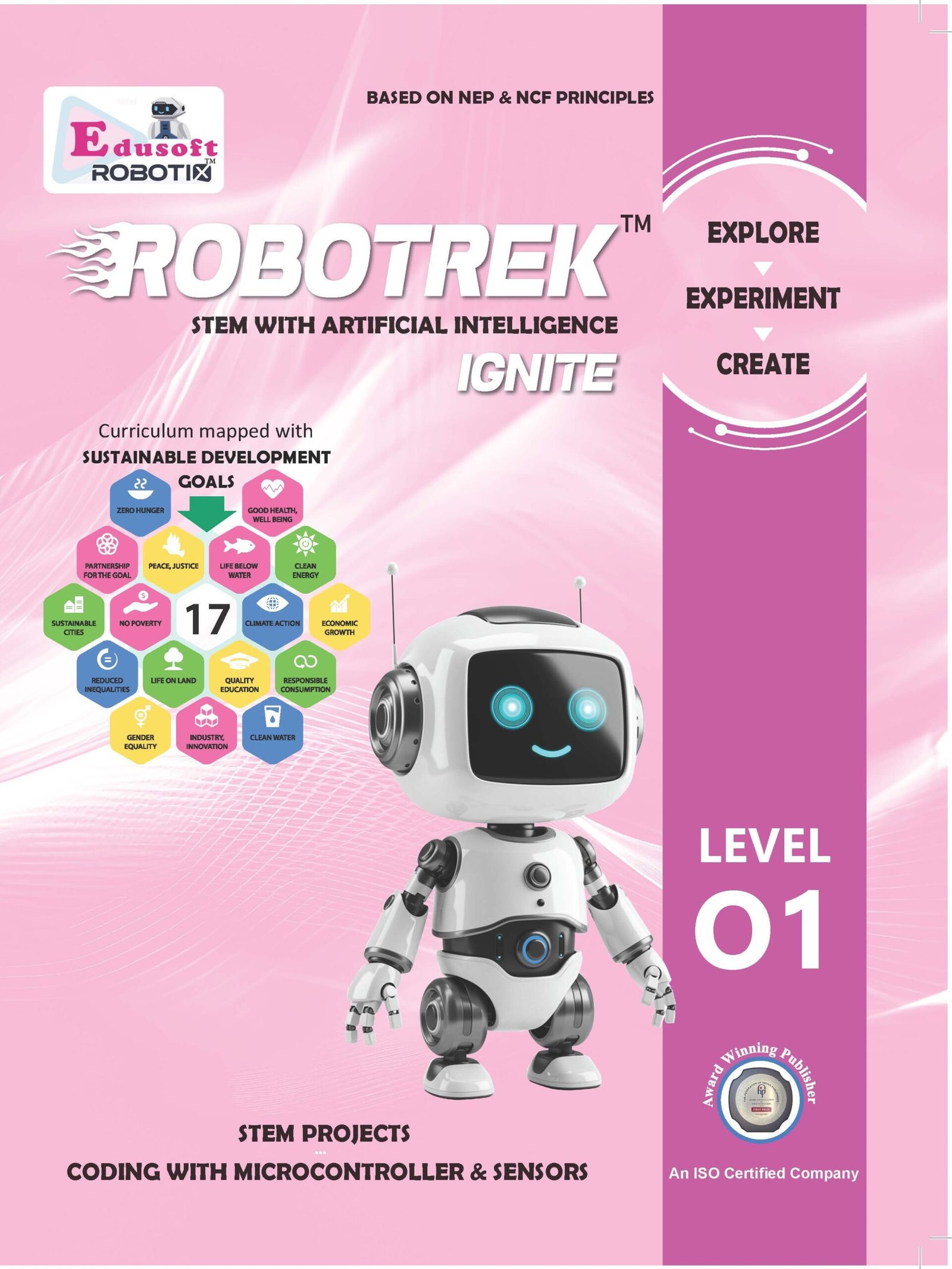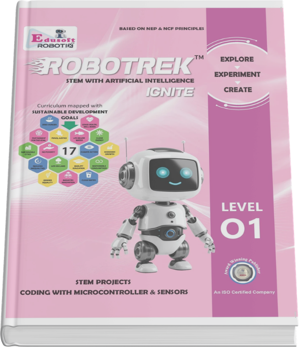 Educational Materials: The fully illustrated, colourful RoboTrek Ignite (Level 01) textbook, featuring 64 pages and 25 periods of engaging content.