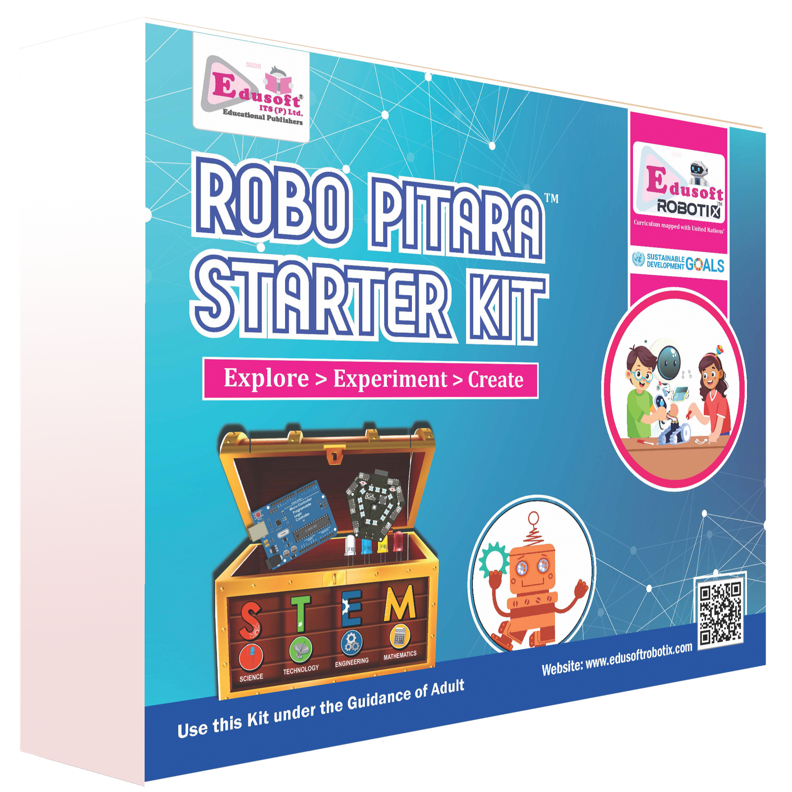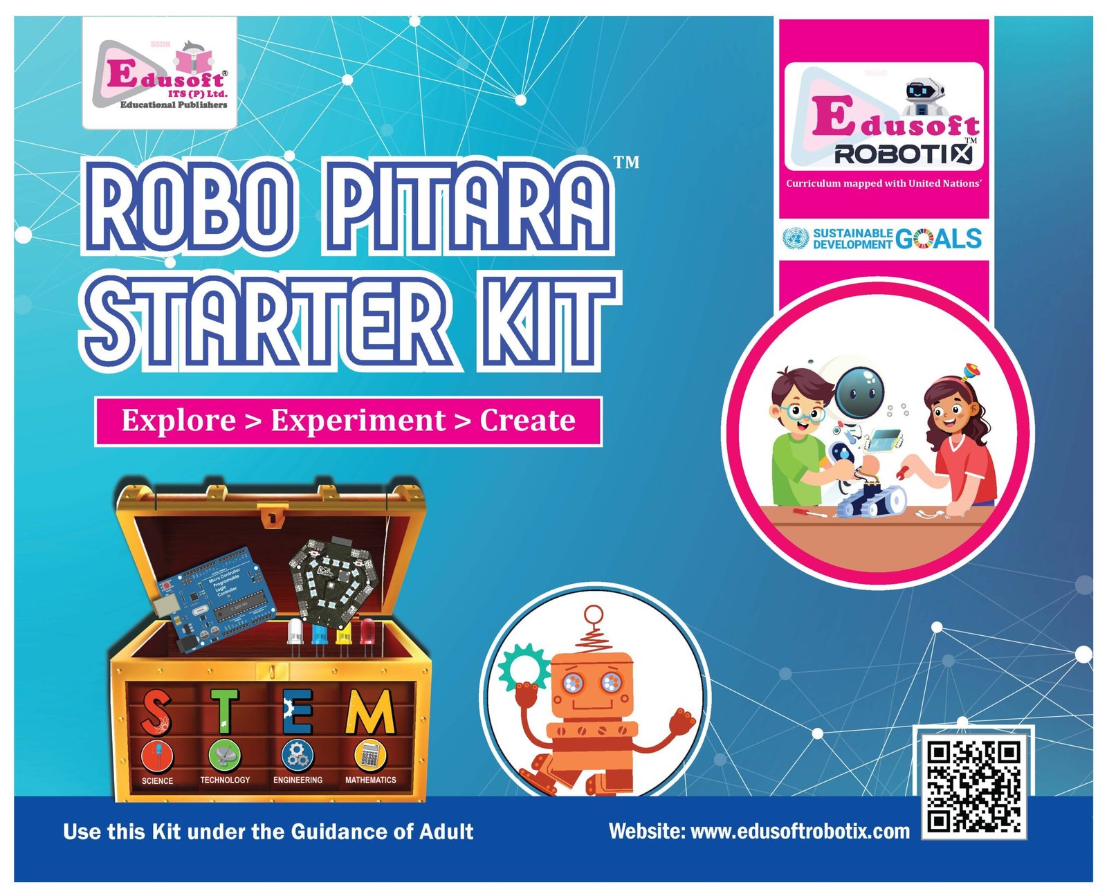 Transform this summer from a season of boredom into an era of innovation! The Robo Pitara Starter Kit is a comprehensive, all-in-one robotics laboratory designed to bring the world of STEM directly into your home. Developed by Edusoft IT Solutions Pvt. Ltd., an award-winning and ISO-certified publisher, this kit is meticulously mapped with United Nations Sustainable Development Goals and based on NEP & NCF principles.